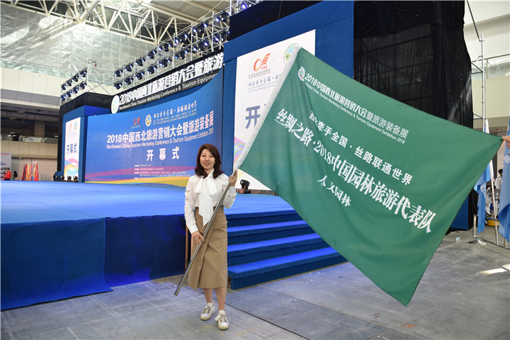 4月13日上午,2018中國西北旅游營銷大會暨旅游裝備展在銀川國際會展中心盛大開幕。浙江人文園林股份有限公司赴會參展,人文園林副總裁韓瑤代表公司執旗參加開幕式。