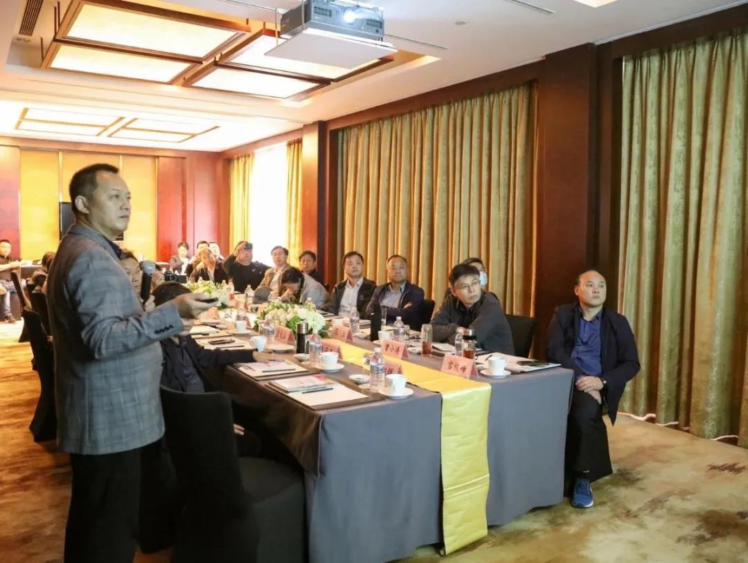 ▲陳勝洪董事長、吳秋霞副總裁介紹人文園林經典案例并與考察團團員深入探討交流